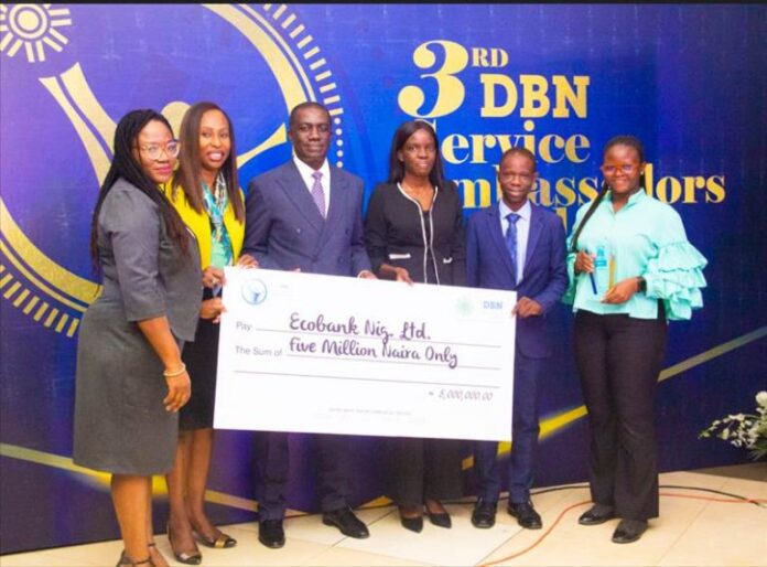 Ecobank Nigeria won 3 prominent awards signifying its’ support for MSME’s in Nigeria at this year’s Development Bank of Nigeria (DBN) Annual Service Ambassador Awards ceremony held in Lagos recently. The Bank bagged the following strategic awards which include: Platinum Service Ambassador; Bank with the Highest impact on Women Issues, and Bank with the Highest impact on MSMEs Accessing Credit for the first time.