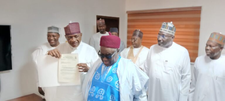 The certificate was presented to the Honourable Minister by Alhaji Abubakar Mamu (Retired Federal Permanent Secretary) on behalf of the Emir of Fika at the Headquarters of the Ministry of Police Affairs, Abuja.