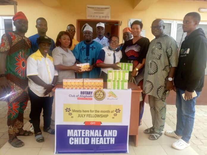 The Rotary Club of Alagbado, under the leadership of Rotarian Oluwaseyi Ogunsimiro, the President of the club, has generously donated clinical drugs to the Alagbado Primary Health Centre located at Alafia Junction, Otta Road, Mosalasi. This significant gesture took place on Saturday, July 27, 2024, in commemoration of the Rotary Month of July, which is dedicated to Maternal and Child Health on the Rotary calendar.